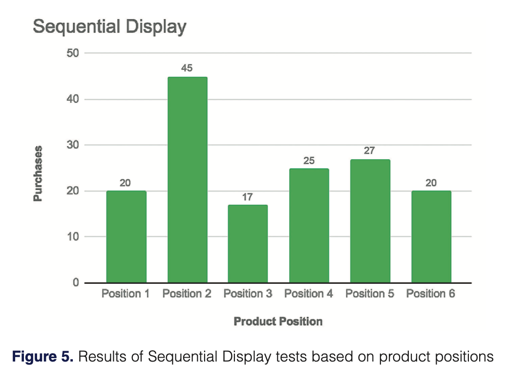 presentación secuencial: se eligieron principalmente productos en las posiciones segunda y penúltima, no exactamente la primera o última, como predecía la teoría.